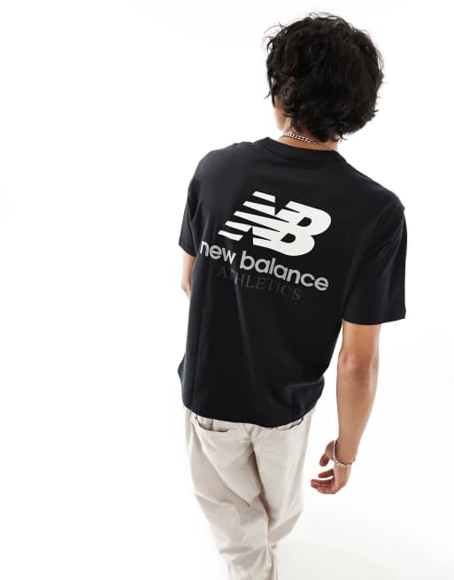New Balance – Czarny T-shirt z nadrukiem na plecach