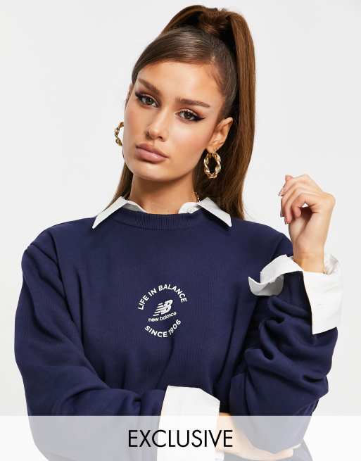 New Balance – Granatowa bluza z nadrukiem Life In Balance – tylko w ASOS