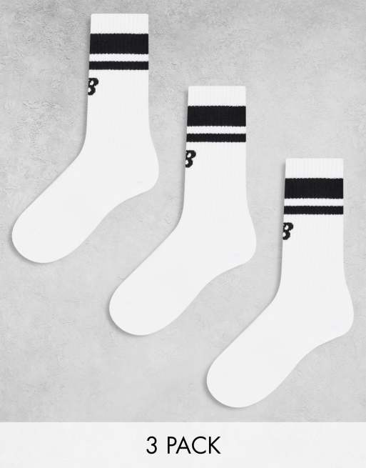 New Balance – Zestaw 3 par białych skarpetek z paskami i logo