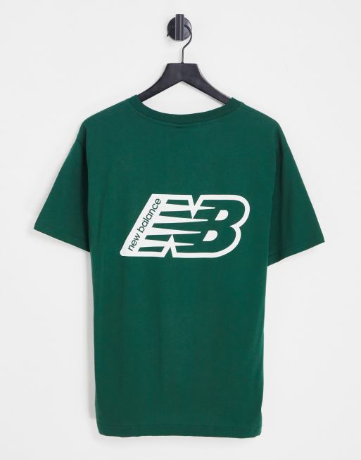 New Balance – Zielony T-shirt z nadrukiem logo na plecach