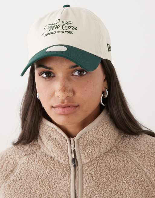 New Era – 9twenty – Bawełniana beżowa czapka z kontrastowym zielonym daszkiem