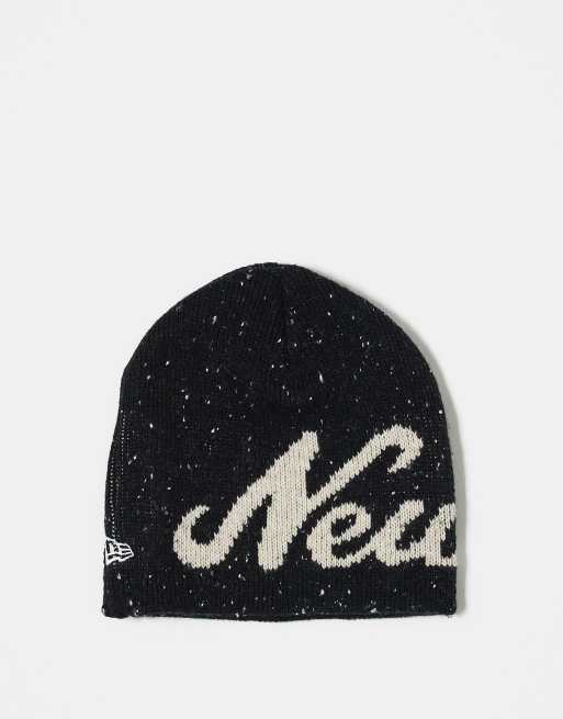 New Era – Czarna czapka beanie w żakardowy wzór z logo