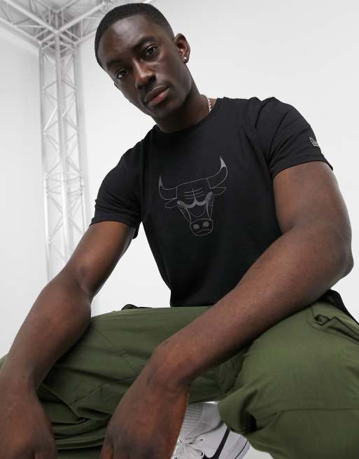 New Era – Czarny T-shirt z odblaskowym logo drużyny Chicago Bulls