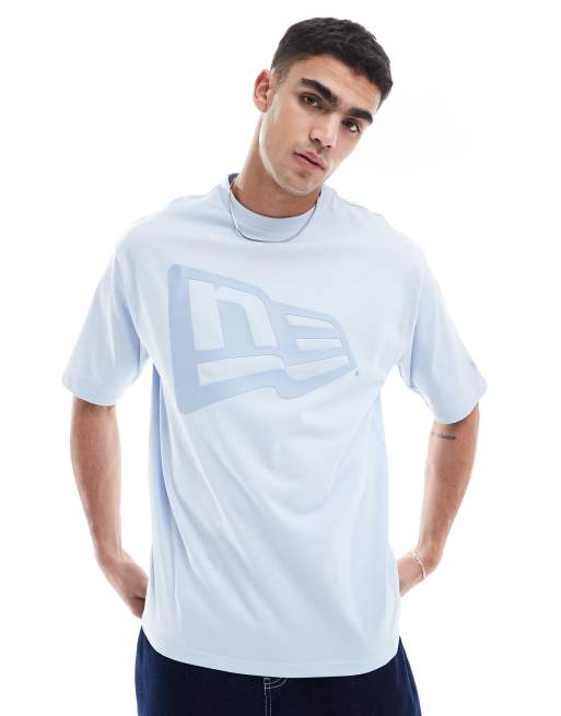 New Era – Niebieski T-shirt oversize z logo z motywem flagi