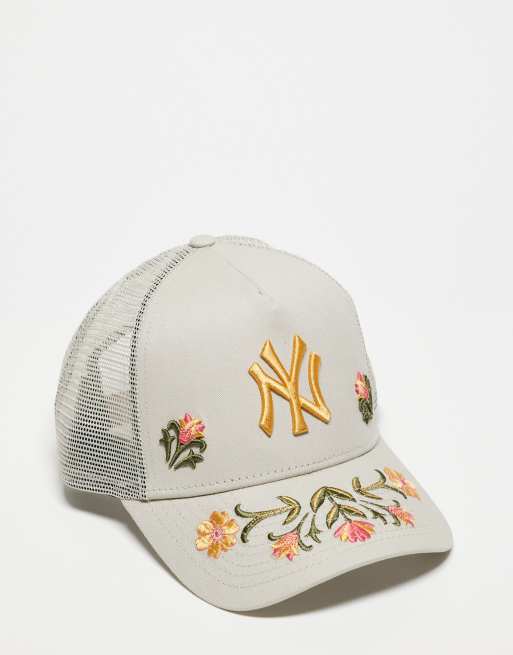 New Era – NY Yankees – Beżowa czapka trucker z kwiatowym nadrukiem