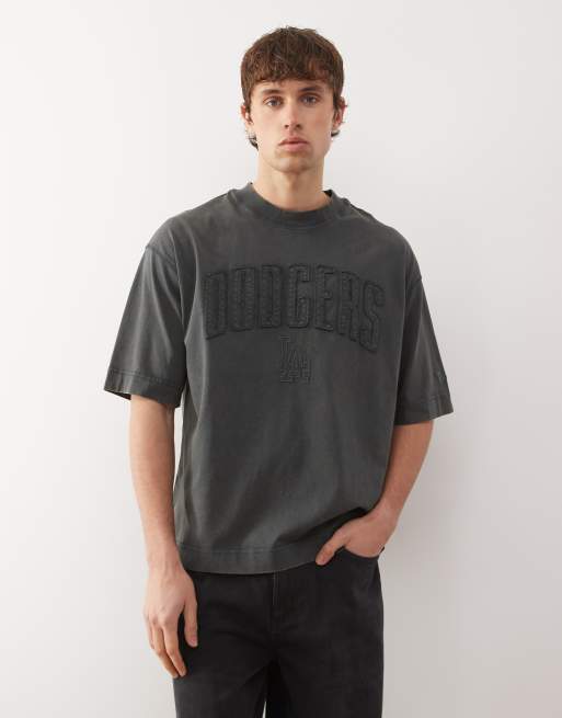 New Era – T-shirt o pudełkowym kroju w spranym szarym kolorze z aplikacją logo LA Dodgers