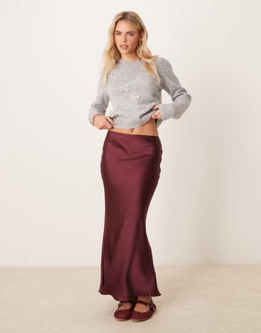 New Look Petite – Cięta ze skosu bordowa satynowa spódnica midi