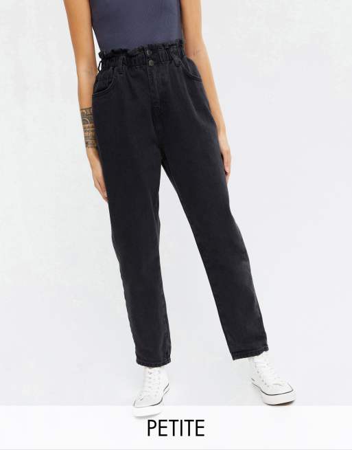 New Look Petite – Czarne jeansy mom fit z talią typu paperbag