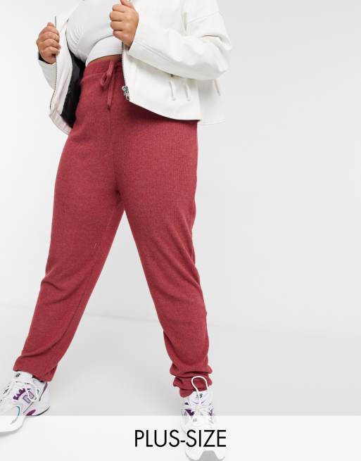 New Look Curve – Miękkie prążkowane joggersy w jagodowym kolorze
