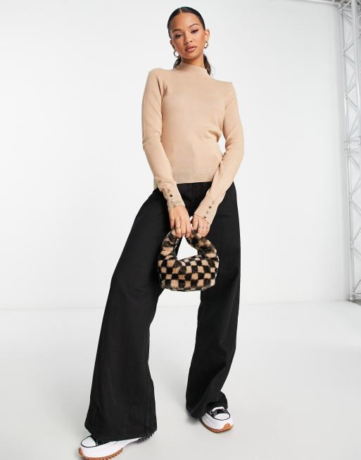 New Look – Dzianinowy sweter z okrągłym dekoltem i mankietami w camelowym kolorze