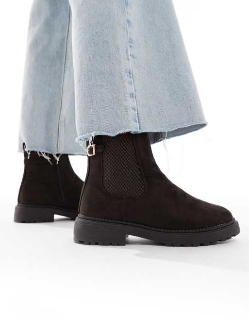 New Look Wide Fit – Brązowe sztyblety z imitacji zamszu na grubej podeszwie