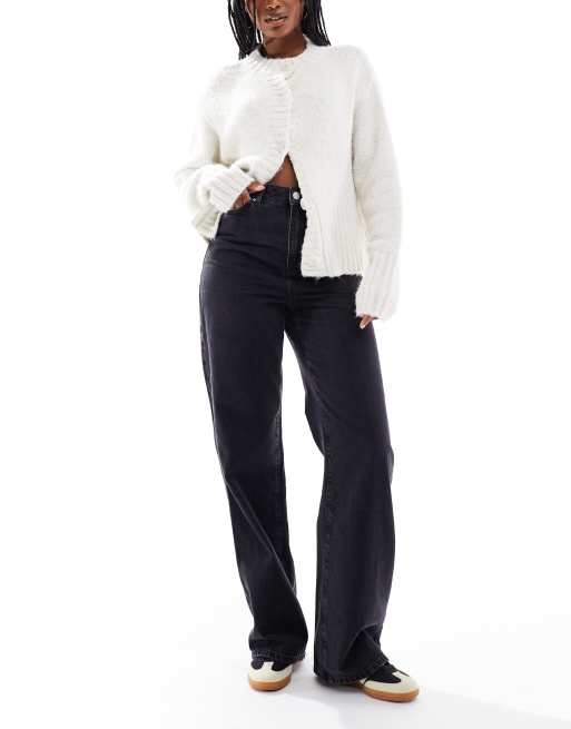 New Look – Adalae – Czarne jeansy z szerokimi nogawkami