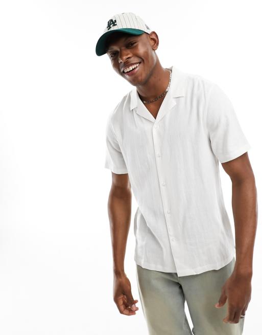 New Look – Biała koszula z krótkim rękawem z mieszanki lnu