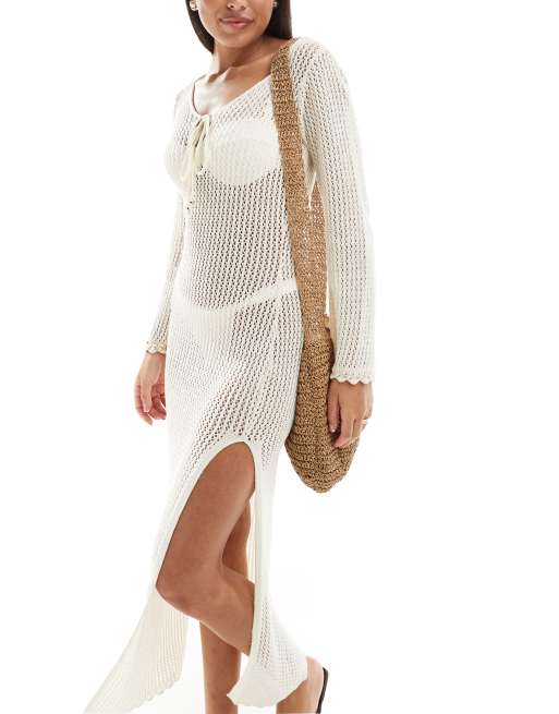 New Look – Biała sukienka maxi z długimi rękawami i łezką