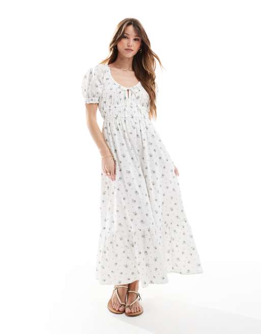 New Look – Biała sukienka midi typu milkmaid z drobnym kwiatowym wzorem