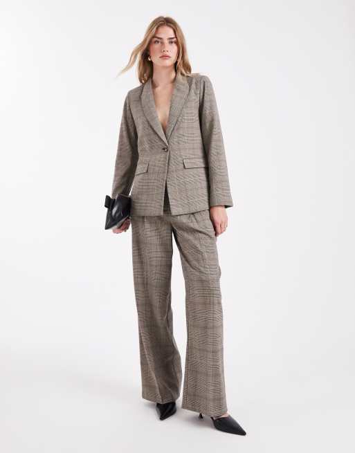 New Look – Brązowe spodnie z szerokimi nogawkami w kratkę, część zestawu