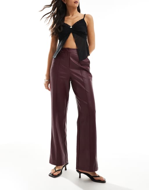 New Look – Ciemnobordowe spodnie z szerokimi nogawkami z poliuretanu