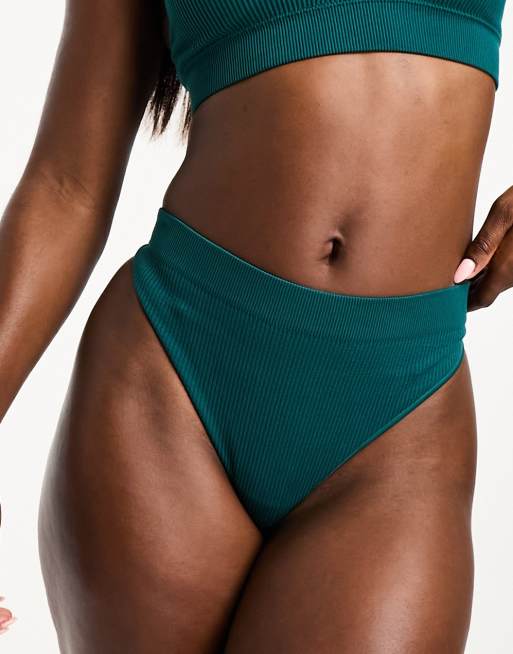 New Look – Ciemnozielone bezszwowe stringi z prążkowanego materiału