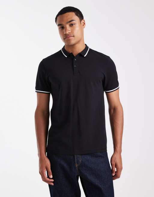 New Look – Czarna koszulka polo z kontrastowym wykończeniem