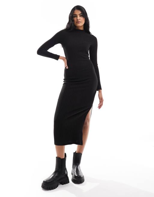 New Look – Czarna sukienka midi z golfem i długimi rękawami