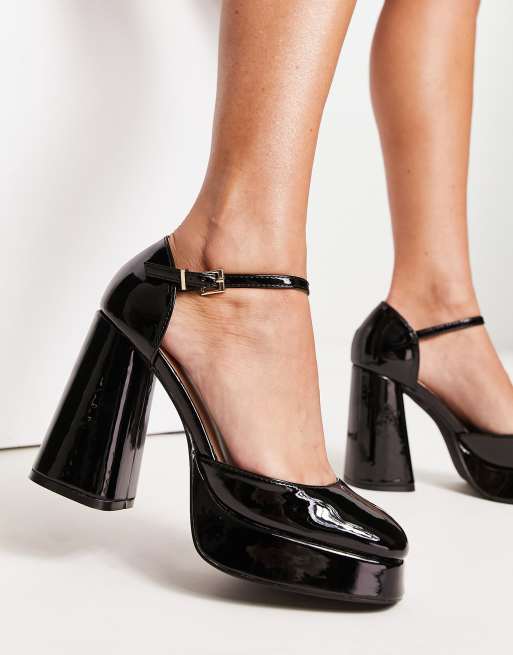 New Look – Czarne lakierowane buty Mary Jane na platformie i obcasie klockowym