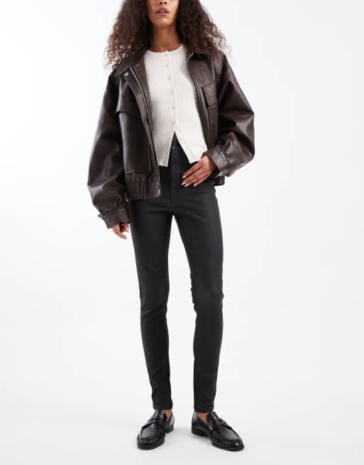 New Look – Czarne powlekane jeansy o obcisłym kroju