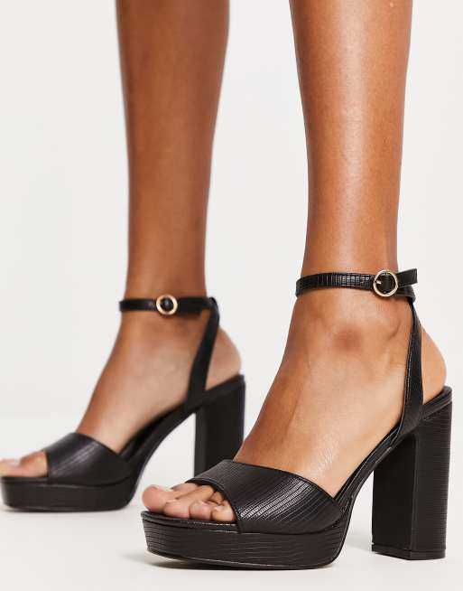 New Look – Czarne sandały na platformie i obcasie z efektem skóry krokodyla