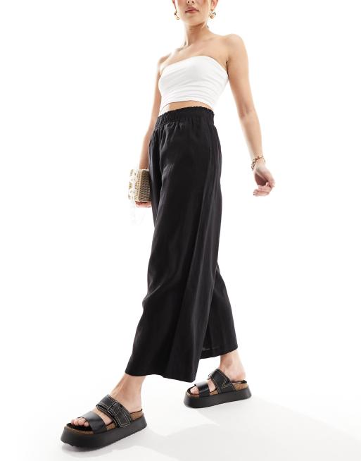 New Look – Czarne spodnie z krótszymi nogawkami z domieszką lnu