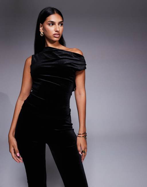 New Look – Czarny aksamitny top z odsłoniętym ramieniem, część zestawu