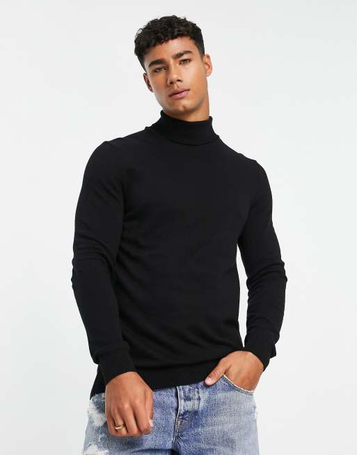 New Look – Czarny dzianinowy sweter z golfem o dopasowanym kroju