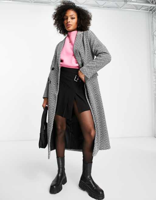 New Look – Czarny elegancki płaszcz maxi ze wzorem