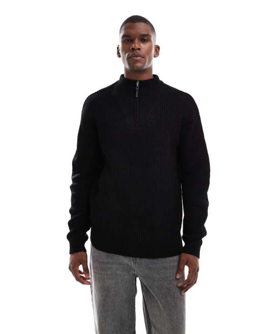 New Look – Czarny sweter z dzianiny o splocie angielskim z suwakiem pod szyją