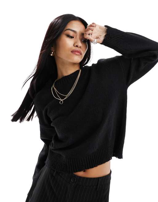 New Look – Czarny sweter ze ściegiem drabinkowym