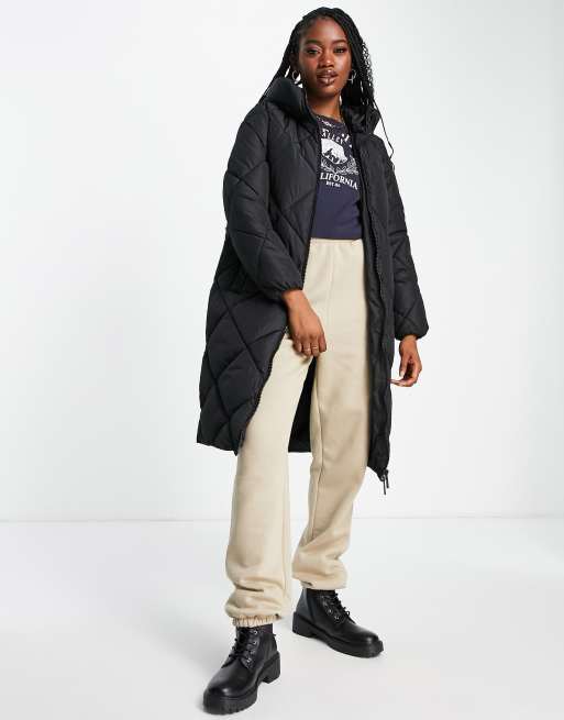 New Look – Czarny wyściełany płaszcz o wydłużonym fasonie pikowany w romby
