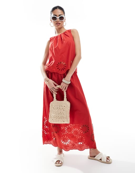 New Look – Czerwony podkoszulek z haftem angielskim na dole, część zestawu