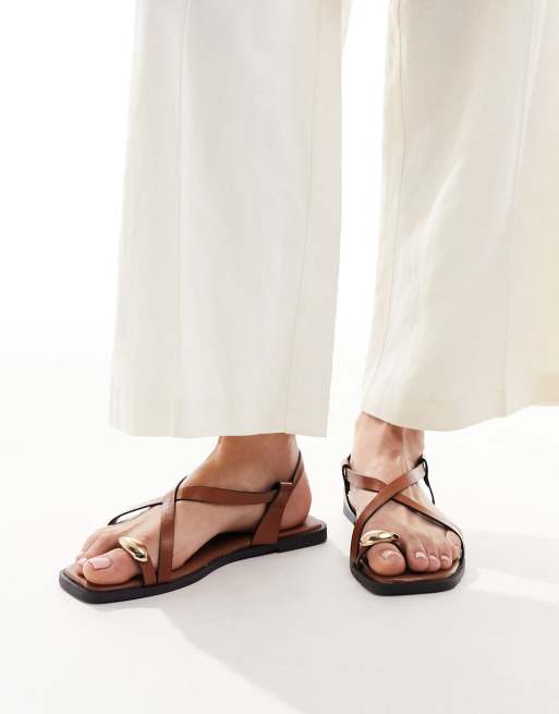 New Look – Jasnobrązowe sandały z pętelką na duży palec z metalowym detalem
