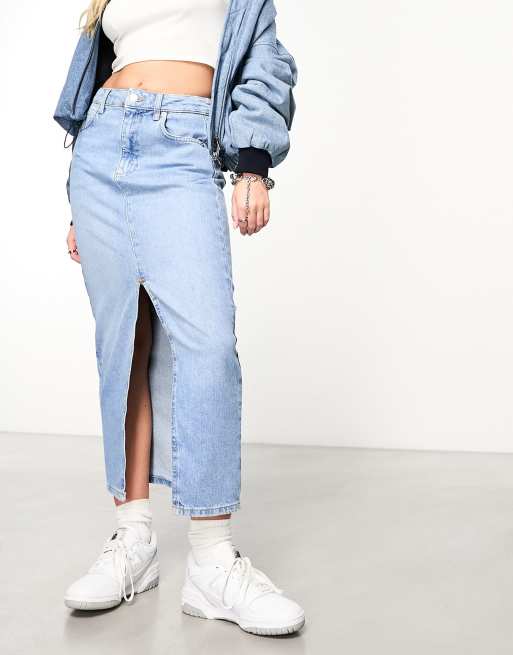 New Look – Jasnoniebieska spódnica jeansowa maxi z rozcięciem z przodu