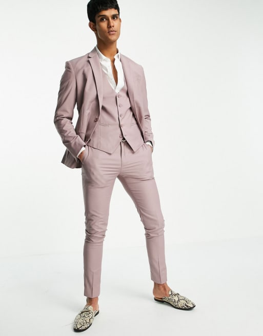 New Look – Jasnoróżowy garnitur o obcisłym kroju: marynarka, kamizelka i spodnie