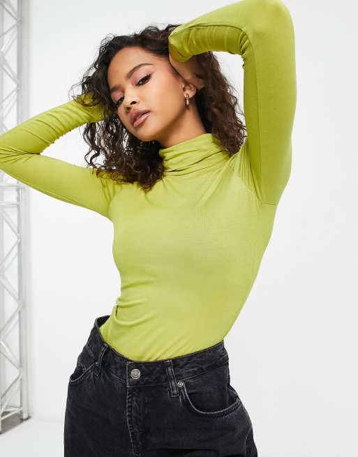 New Look – Jasnozielone body z odwijanym golfem i długim rękawem