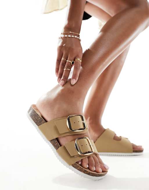 New Look – Kamiennobeżowe wsuwane płaskie sandały z dwoma paskami