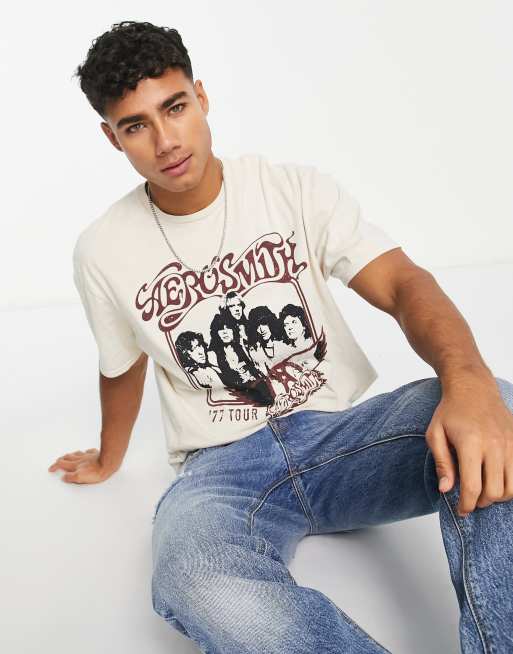 New Look – Kamiennobeżowy T-shirt z motywem zespołu Aerosmith