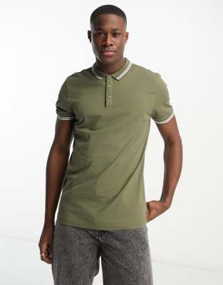New Look – Koszulka polo z piki w ciemnym odcieniu khaki