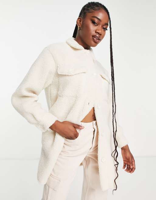 New Look – Kremowa kurtka koszulowa z kożuszka