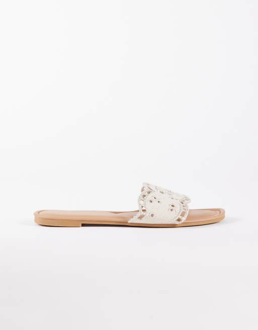 New Look – Kremowe sandały z haftem angielskim