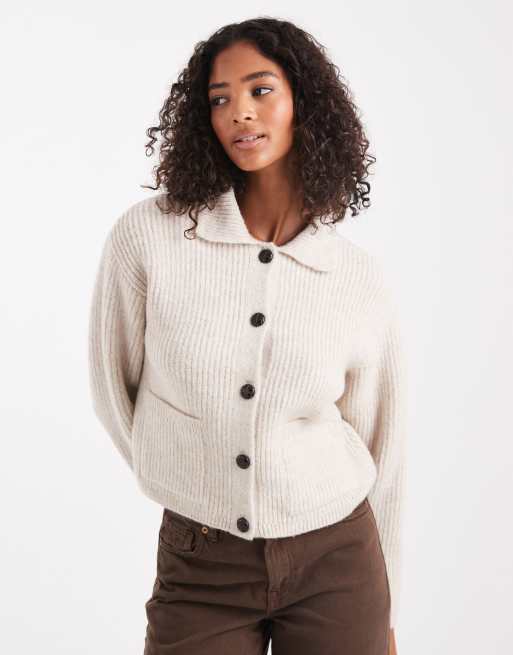 New Look – Kremowy kardigan z kołnierzykiem, zapinany na guziki