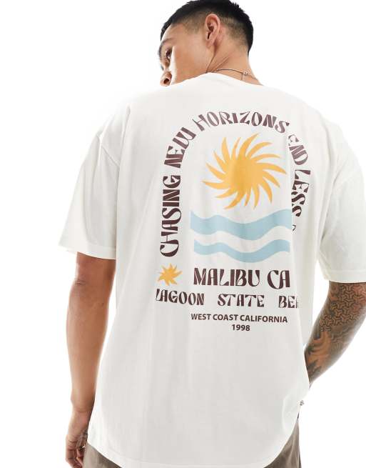 New Look – Kremowy T-shirt z nadrukiem z motywem Malibu