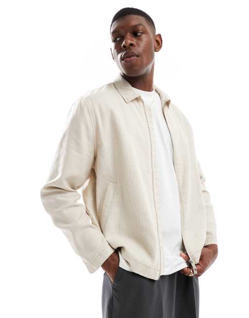 New Look – Kurtka Harrington w paski z mieszanki lnianej w kolorze jasnobeżowym