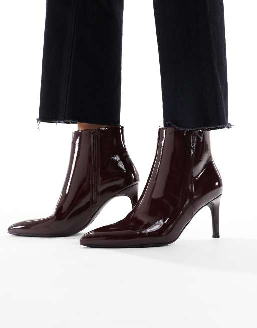 New Look – Lakierowane bordowe botki na obcasie z noskami w szpic