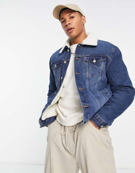 New Look – Niebieska kurtka jeansowa z podszewką z kożuszka