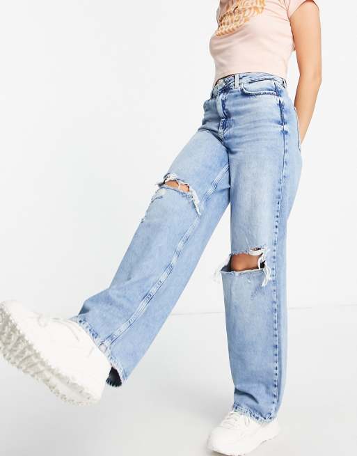New Look – Niebieskie obszerne jeansy z rozdarciami w stylu lat 90.